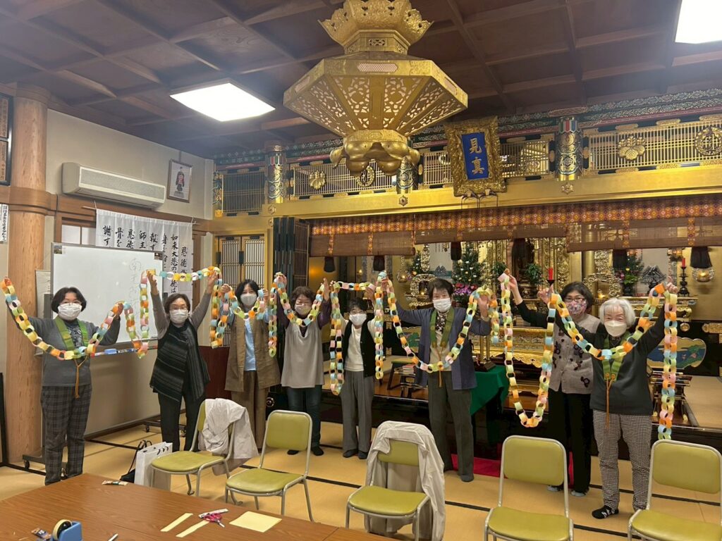今年も源米穀店さんからカレーのお米をご寄付いただいたり、門徒さんからおもちゃの景品をご寄付いただいたりしました。また、飾り付けの「輪飾り」は、婦人部の皆さまにお作りいただきました。皆さまの支えがあり、続けてこれましたこと、大変有り難く感じております。