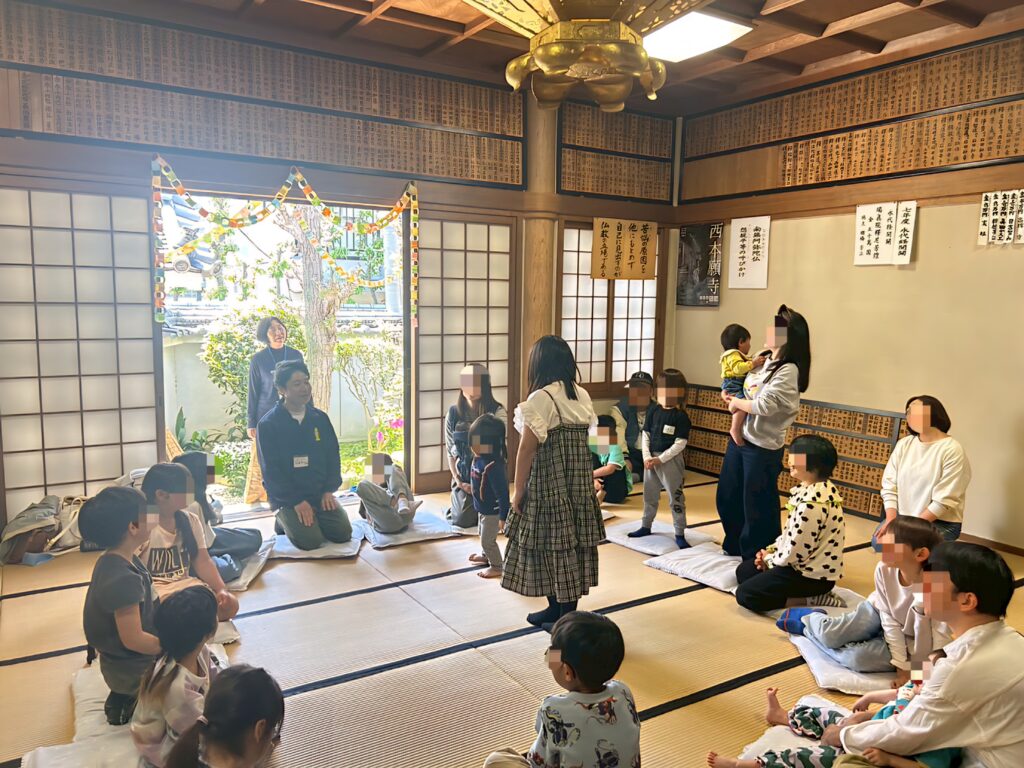 「クロス拍手」や「物当てゲーム」、本堂内に隠れている「パンダちゃんを探せ(宝探し)」などで盛りあがりました。